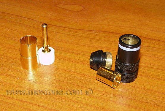 Za konektore možete upotrijebiti one najjeftinije, uz uvjet da imaju teflonsku izolaciju i da su napravljeni od nemagnetskih materijala. Bilo bi poželjno da su posrebreni (npr. Cardas na slici 4) ili pozlaćeni (slika 5). Od konektora se ne koristi tijelo (naš kabel ionako nije koaksijalan!) i elementi za pričvršćivanje.